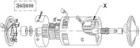 4. Q. What is the name of the part marked as 'x' in the bendix type starting system? | वेंडेक्स ड्राईव टिंग सिस्टम मे 'x' निशान लगे पार्ट का क्या नाम है?