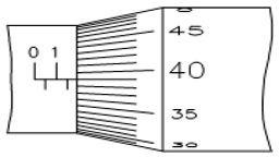 38. Q. What is the reading of outside micrometer (0.25mm)? | आउटसाइड (बाहरी) माइक्रोमीटर (0.25 मिमी) की रीडिंग क्या है?